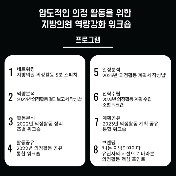 [앵콜][모집] 압도적인 의정활동을 위한 지방의원 역량강화 워크숍BEST